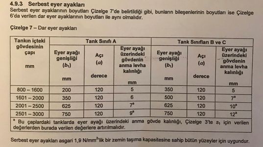 Her bir tankta kaldırma mapaları olmalıdır. Kaldırma mapası sayısı, anma hacmi 20.000 Litre'ye kadar olan bir tank için en az 1 ve 20.000 Litre'nin üzerinde olan tank için 2'den az olmamalıdır. Kaldırma mapası/mapaları, tankın yatay konumda kaldırılmasına imkan sağlayacak şekilde konumlandırılmalıdır. Tanklara tamamen kaynak edilen kaldırma mapaları, kalıcı şekil değişikliğine neden olmadan boş tankın kaldırılmasına imkan sağlamak için yeterli ölçü ve sayıda olmalıdır. Kaldırma mapaları, çapı en az 60 mm olan bir kaldırma deliğine sahip olmalıdır. Deformasyonu engellemek ve kaplamanın bütünlüğünü devam ettirmek için bir kompenzasyon levhası sağlanmalıdır.