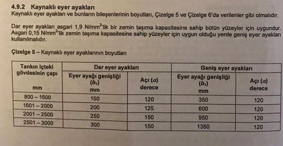 Kaynaklı eyer ayakları ve bunların bileşenlerinin boyutları, Çizelge 5 ve Çizelge 6'da verilenler gibi olmalıdır.